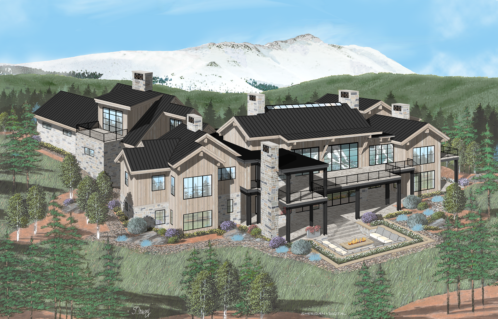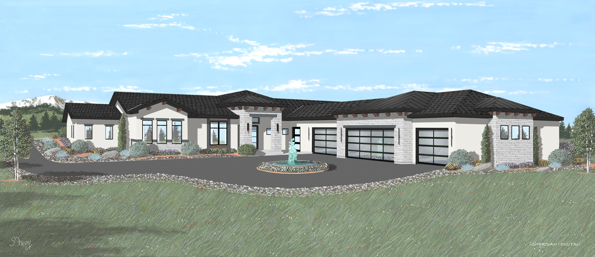 "Original hand-crafted illustrations of Custom Homes are wrapped in landscaped environments reflecting the site's natural qualities, and the interiors convey a sense of quality of life and comfort.